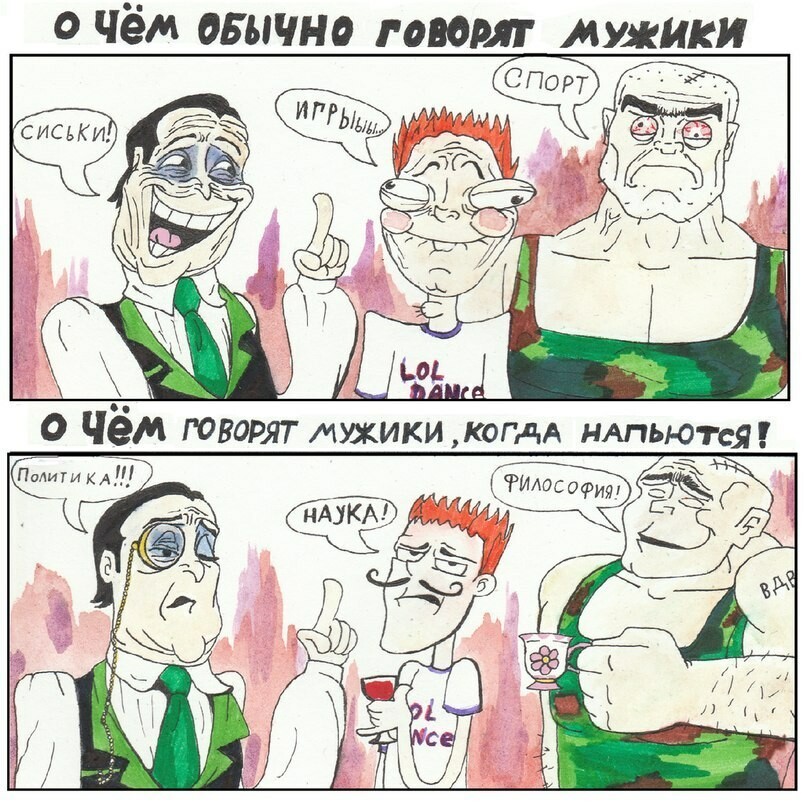 Ctulhu 2 887 Опубликовано 13 марта, 2015 трезвые про женщин, пьяные про баб, ну всё верно))) Цитата Ссылка на комментарий