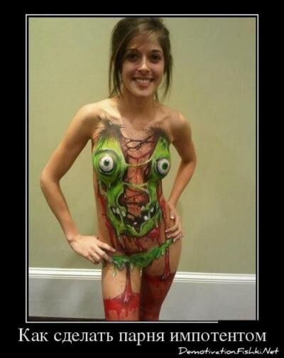 Judas_Priest 87 Опубликовано 14 августа, 2012 в душ ее и будет норм, не пайму пачему вы становитесь гейями, импоьентами да ты на лицо её, на лицо посмотри! Там и без боди арта можно демотивировать.!!! Цитата Ссылка на комментарий