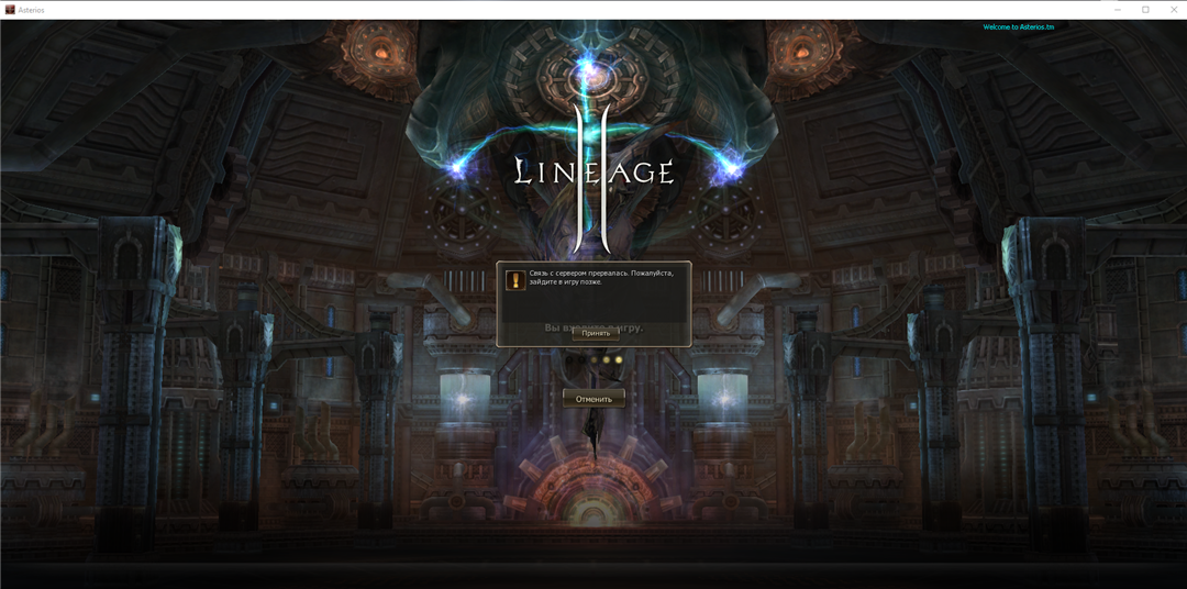 Уважаемая администрация! Хотелось бы просто поиграть в Линейку на Астериосе! Просто отреагируйте, пожалуйста! Или выдайте какую-то рекомендацию (что надо сделать, чтобы НЕ), или напишите: "...мы работаем над проблемой..."!!!! Я с Вами практически с самого открытия, обидно вот так расставаться! А ведь вы именно ТАКИМ способом отваживаете от Астериоса игроков! На "Рейтинг серверов Lineage 2 | MMOTOP.ru" давно заходили??? Вы ведь с клиента всех туда отправляете! а потом вот это....