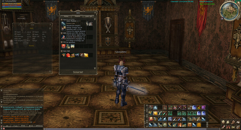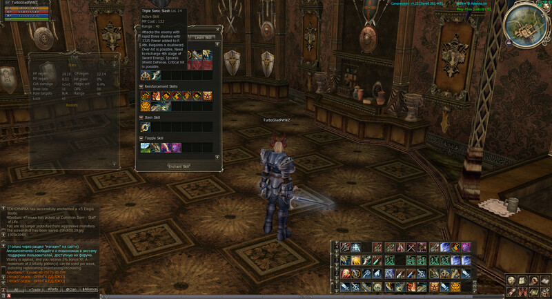 Про скилл: Собственно в скриптах skilldata фреи этих скиллов нету, потому что их добавили только в HF, но что они делают: при автоатаке с шансом 15% при простом ударе и с шансом 30% при крите увеличивают текущий уровень зарядки на 1 (как Sonic Focus). Типа задумка была чтоб можно было лучше сочетать автоатаку и скилы снижающие уровень заряда, и шансово тратить меньше времени на заряд при ковырянии. Как я понимаю они имеют либо два эффекта типа {i_focus_energy;6} либо два условия - для крита и для некрита. Предложение: добавить данным скиллам еще один третий эффект, триггер на расход маны, как у ножей и гномов. Сейчас использовать на мобов одиночные физ скилы гладом или тиром довольно нелепо в большинстве случаев (кроме бластера, бластер относительно недорогой), обычно бьют только массухами и большой парик чтоб расход маны компенсировался числом целей. Например у того же глада на 67 уровне Tripple Sonic Slash стоит 132 маны, а ее всего около 1200 и регенится она по 5. Идея для триггера - отталкиваться от s_attack_trigger_blunt_mastery1, а он имеет: reuse_delay = 8 abnormal_time = 5 abnormal_type = weapon_mastery И дает помимо шанса стана -60% расхода маны на физ умения: {p_magic_mp_cost;0;-60;per} Так же триггер гномов имеет шанс вылета 50% при крите: {p_trigger_skill_by_attack;{enemy_all;1;100};1;{1;50;diff};[s_attack_trigger_blunt_mastery1];self;{blunt}} По этому для нового триггера глада/тира предлагаю: На соник мастери / форс мастери добавить шанс выбить еще один триггер (помимо уже имеющегося скила который собственно заряжает), на расход мп, шанс пусть будет как у самого скила - 15% при простой атаке и 30% при крите. А для самого нового триггера сделать кд скажем не 8 секунд как у гнома, а например 10 (ну потому что шанс выбить не только при крите но и при обычной атаке - более высокий), абнормал тайм такой же - 5 секунд, и из эффектов только один: -60% расхода маны. Что это даст: при соло каче на х1 гербовых мобах гладу и тиранту можно будет чаще юзать скилы что сделает данное занятие менее унылым и более эффективным при меньшем бафе. Чуть приблизит их к гномам и ножам в этой области. Ну и вообще все кто пытается бить скилами в текущих реалиях с усиленными мобами оказались в очень невыгодном положении. У физ скиловиков маны всего на 8-10 скиллов, будь это бэкстаб, ТСС или еще что-то, при этом в ПВЕ если даже слить всю ману то импакта почти никакого, когда у мобов лишние 60-70% пдеф, а в ПВП импакт очень недолгий пока мана не кончилась. Так что это было бы крайне актуально и несложно в плане реализации. Ниже пара картинок для иллюстрации