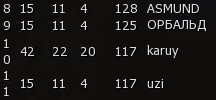 обрати внимание: персонажи 8 и 11 сделали одинаковое количество боев\побед\проигрышей, но количество ПТС разное, потому что за победу\проигрыш можно заработать\потерять от 1 до 10 очей.