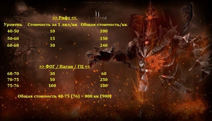 Стоимость [ПРО]качки персонажей с 40 по 76 уровень