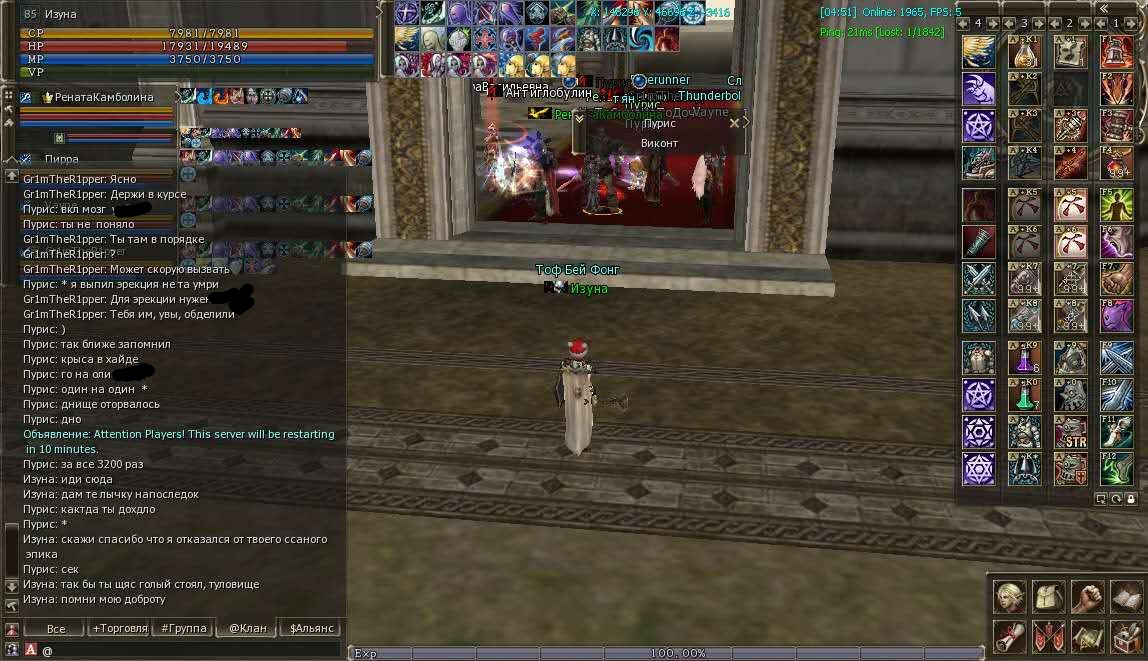 ° интересовался у Замира (это у нас топ фармер был, хиро шк заливной), кто ему в кп нужен. говорит, мне надо 2-5 дестров основ с сабами и 2 кольцами. вроде как думаешь, елки палки, жирно то как, но вот по выхлопу, мой соклан нуб теска, так и оделся в топ буст у него в кп. они закрывали по 5 БФ по откату, 5 Тиат, 5 Фринт и при этом еще умудрялись лабать на скрипке. играли по прайму. лайферы. просто побегал по инстам, пл лут почтой скинул, через 3 дня снова зашел и по новой. того гляди через месяц-второй с онлайном в 8+ часов в неделю, по 4+ часа/1 прайм день, можно топ пушки покупать и сеты +10ые. единственное, что мне не понравилось, это предполагаемый акшаринг и туча дестров, которых придется качать. а после дестров и сапорт к нему. но в принципе.. это того стоит, если хорошая кп. позволит при минимальных усилиях и онлайну, быть миллиардером с 10ка начиная, даже особо не играя в л2, а только поигрывая за компанию. рано или поздно онлайн все равно у каждого падает. это неизбежно и если вы себе старость не подготовите, то будете и в старости пахать, как в молодости и кряхтеть в три пота матюкаясь. планировать нужно всегда наперед. я бы сам занялся, но у меня через вл-ов все пошло. кто-то через дестров. кому что больше по душе. соло вл, или пати дестр. только вот пати вещь нестабильная и только в прайм, а вне прайма дуля. и все от удачи зависит, а у меня все статично годами