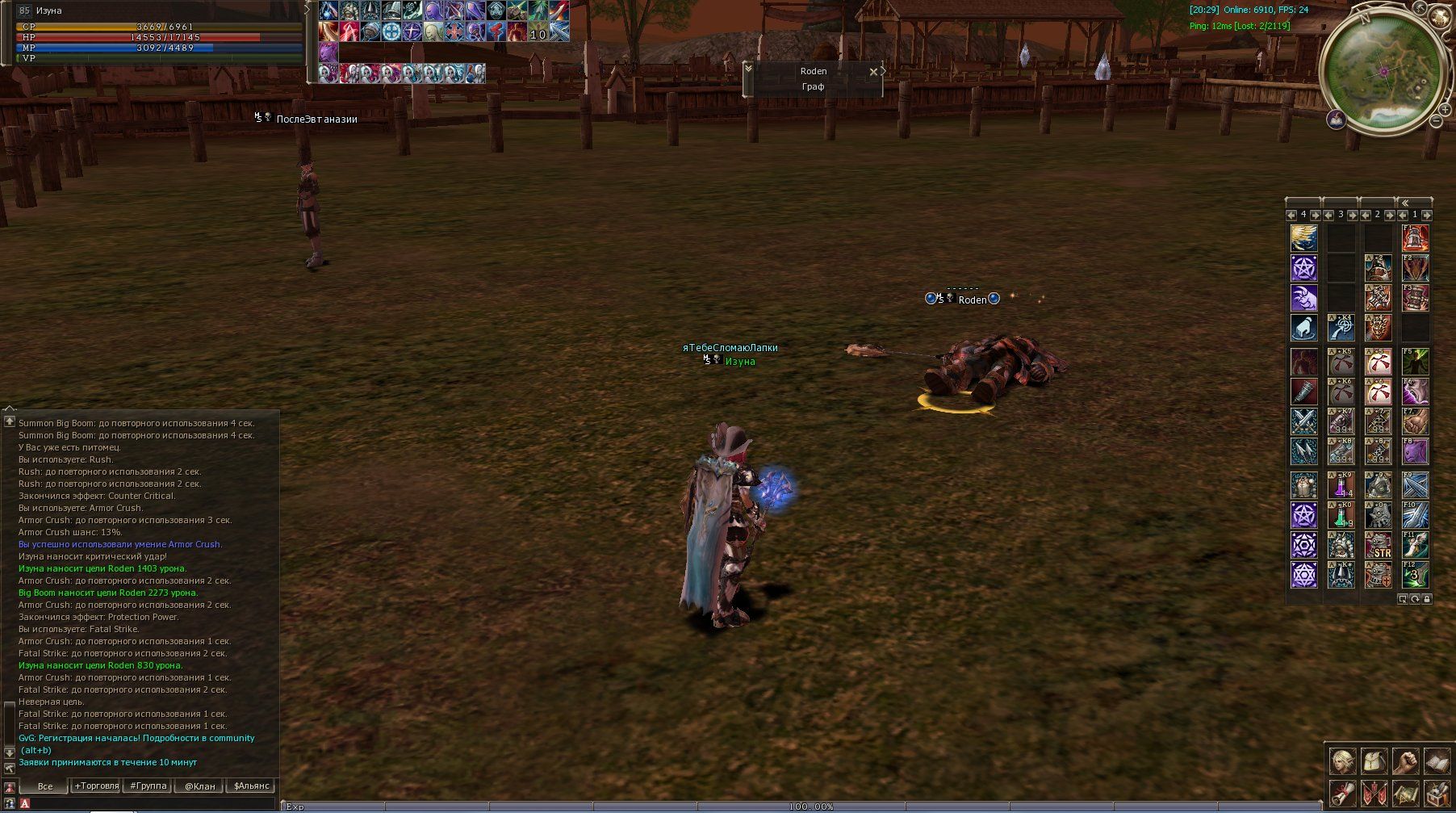 5. рейдж селф (как у вл) - увеличивает п.атак на +20%. если меч, блант или пика +29% к п.атак. если двурук пуха (кроме пики), точность +4 и п.атак +6%, на полторы минуты (стакается со всем, ибо селфик)