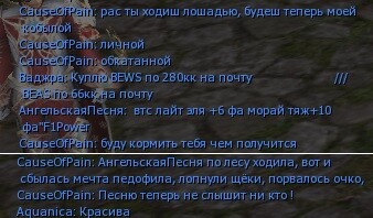 ну до сих пор, все мои скрины доказывают что язычек у тебя шальной. И где я говорю что-то про "приходы на деф"? Это ци-та-ты, ваших бывших со-кла-нов. Понимаешь? вот полная версия ниже... Клан Смешарики 1. Идеология. Клан создан с целью обеспечения интересной игры для своих мемберов. В моём понимании интересная игра обязательно должна включать в себя такие элементы, как: PvP, Осады, походы на Эпиков и различные эвенты, устраиваемые внутри клана. 2. Структура клана. Форма правления: Деспотизм. Лидер клана. Цапа (игровой ник ЦапЦап) имеет право принимать любые решения. Офицеры. Доверенные лица, уполномоченные лидером клана решать организационные и тактические вопросы, а так же имеющие право разрешать внутренние споры в случае отсутствия лидера клана. В данный момент это: Erik(Илья), Луч Требование к пакам в основном составе: А. Полный состав. Б. Уровень 85+. В. Есть возможность ходить на эпиков в любое время минимум в три человека от Пака. Г. Готовы участвовать в массовых ПвП Д. Онлайн выше 5 часов ежедневно. Соло-игроки. Активные игроки, способные приносить пользу клану, но имеющие рваный онлайн или принципиально неготовые играть в констах. 3. Правила клана: Главное правило. Категорически запрещено убивать соклановцев. Наказание — изгнание из клана. (Срок определяет лидер клана). Ничто не может служить оправданием убийства соклановца кроме прямого приказа лидера клана. Даже если соклановец убил вас. Даже если он признался, что сделал это специально, даже если он обложил матюгами вас и всю вашу родню до пятого колена — это все равно не даёт вам право убить его в ответ. Если же вы не сдержались, то из клана будут изгнаны оба БЕЗ дополнительных разбирательств. Вежливость. Каждый обязан быть вежливым по отношению ко всем. К сокланам, к врагам, к нейтралам (особенно к нейтралам). Не надо путать вежливость с уважением. Уважение надо еще заслужить, а вот вежливость должна быть «по умолчанию». Наказание — на усмотрение лидера клана. Зашел в Мамблу, потом зашел в игру. Каждый мембер обязан находится в Мамбле ВСЕ время, когда он находится в игре (за исключенеим трейда). Даже если вы играете с работы и не имеете возможности общаться голосом. Наказание — на усмотрение лидера клана. Все общение во время спорных ситуаций ТОЛЬКО в Мамбле. Категорически запрещается общение чатом в игре во время спорных ситуаций. Если таковая возникла, то обе стороны обязаны зайти на один из каналов в Мамбле и обсудить ситуацию там. (Даже если один из участников НЕ может общаться голосом) Наказание — на усмотрение лидера клана. Форум. ПЛ каждого пака обязан быть зарегистрирован на странице ВК клана https://vk.com/club63685560 и ежедневно посещать его. Обновляя информацию не реже одного раза в неделю. Команда «Общий сбор» Команда «Общий сбор» объявляется на эпиков или ПвП. Когда дается команда «Общий сбор» все паки и соло игроки из основного состава (находящиеся в этот момент онлайн) обязаны явиться к месту сбора. Наказание за кач во время общего сбора — Денежный штраф. (Определяется лидером). Распределение дропа с Эпиков : Всё распределяется по усмотрению лидера клана. Правила поведения с варами: Категорически запрещается находиться с варами в одной пати, а так же бафать их. Наказание — изгнание из клана. (Срок определяет лидер клана). Крайне нежелательно качаться в прямой видимости с варами. Правила п