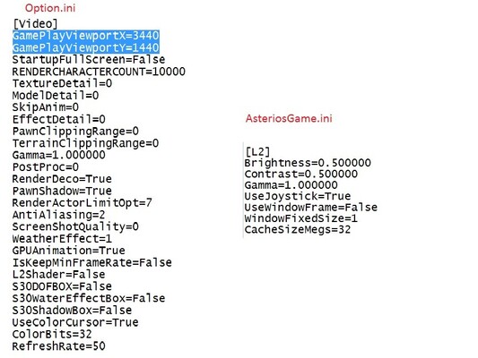 Прикрепил настройки Option.ini и AsteriosGame.ini . Настройки взяты с этого форума, но в безрамочном режиме игру растягивает вот так... Может потому, что разрешение 3440х1440 ?