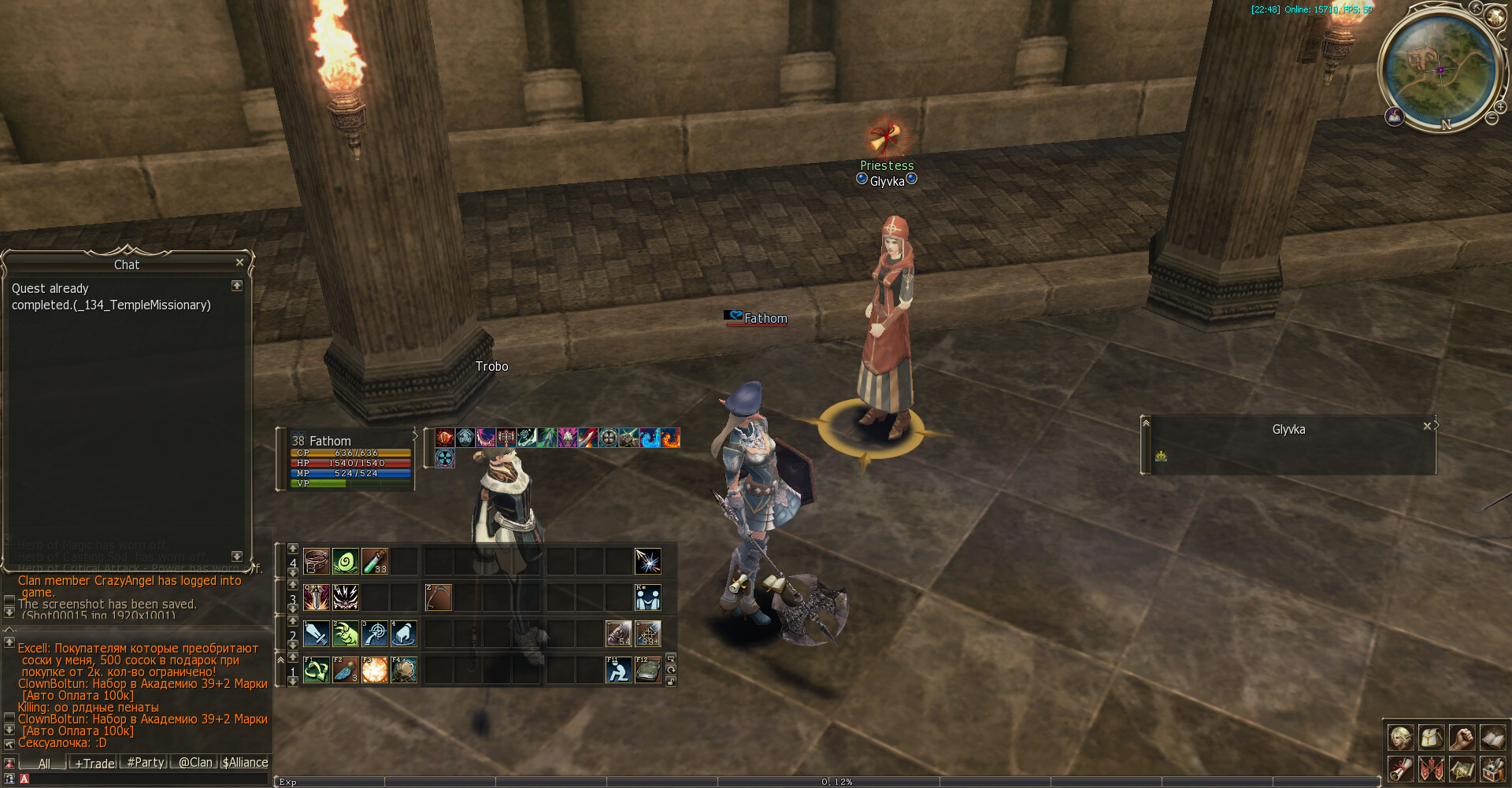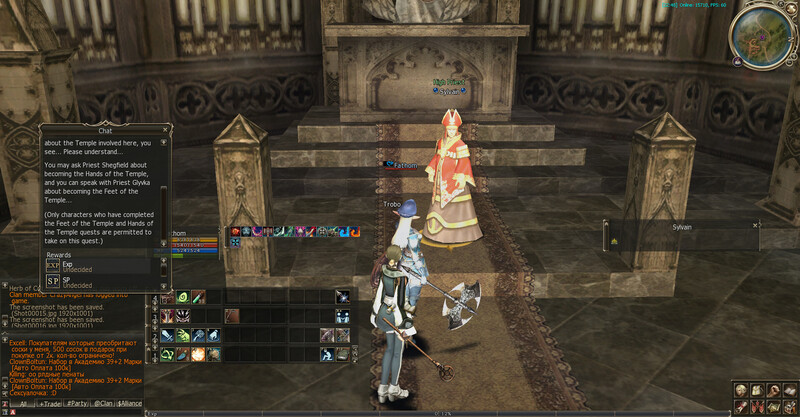 Ник и сервер: Fathom, x1 Prime Ревизия: 31993М, 06.10.2021, 9:23AM (Мск) Описание: Temple Champion - 2 Проблема: не берется следующая часть квеста (Temple Champion - 2). Более подробное описание проблемы: После выполнения квестов в Дионе Temple Missionary и Temple Executor доступна следующая часть в цепочке квестов (берется у Сильвана) - Temple Champion - 1, а затем - Temple Chapion - 2. Проблема в том, что необходимый квест я выполнил (Temple Champion - 1), а вот Сильван отказывается давать мне следующую часть (Temple Champion - 2). Диалог - в скринах ниже.