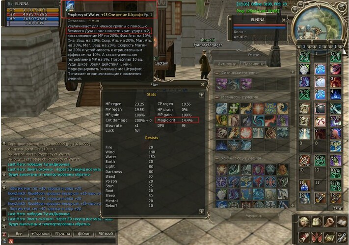 тупая тема бесполезного флуда в которой нету ничего конкретного по заданому мной вопросу в этой теме, кроме ответа админа про то что все что написано в описании бафов в клиенте не является достоверным. Protection of Water (ПОВ) ЕЕ, скрин которого я выложил выше, не дает ничего к шансу или частоте маг крит удара! на данный момент только ПОФ ПП дает к шансу маг крита, все остальные к силе, не смотря что на них написано и это никак нельзя проверить изза огромного разброса в маг дмже и тем более дмжа в МАГ крите. П.С. если ты в прошлом месяце играл в интерлюде, то ты перепрыгнул оч многое, тут тебе не помочь, а я имею ввиду обновление епилога до фреи... еще в прошлом месяце вика давала шанс маг крита как и ПОВ ЕЕ, помню это потому что фармил олимп за ЕЕ и сравнивал бафы какой что дает... тож самое мне ответили и в ПМ после вопроса в хч, многие даже не знали и удивились, но проверив тож написали что не так. П.С.2 Тему создал по просьбам игроков сервера мне в ПМ(после опроса в ХЧ), если она не актуальна удалите плз.... П.С. 3 Хватит всем кто не играет на х55 писать в моих темах, вы вовсе не в курсе что происходит у нас на серве и как это влияет на балансы у нас на серве... ваш лишний флуд мешает администрации понять суть моих вопросов и самой темы....
