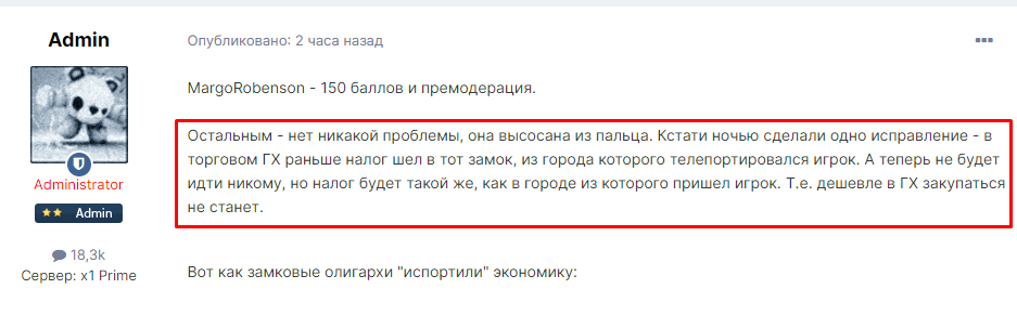 Раньше на форуме редко сидел, сейчас сижу часто и начинаю понимать сколько же тут нытья… Люди ноют мало места им, но сами не понимают на что они сейчас плачут… Возьмём за пример х5, люди плакали, что на парнасе мало места - Админ увеличил расстояние между торговцами в 1.5-2 раза (удачное было нытьё? Ответ очевиден), спустя некоторое время люди опять начали плакать про места на парнасе (видимо забыли, что было в прошлый раз) - Админ увеличил плату за телепорт на парнасе в 3 раза и увеличил оплату оффлайн торговли в 2 раза.