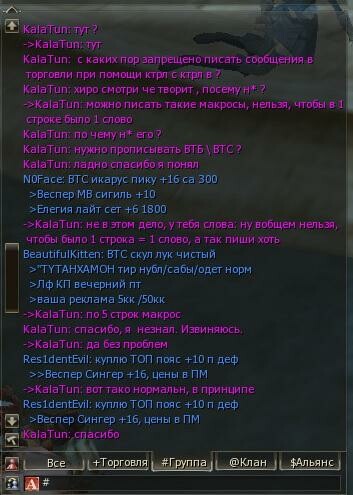 GM-Himba Опубликовано 8 июня, 2015 Поделиться Опубликовано 8 июня, 2015 Исполюзую макрос на 6 различных сообщений с периодом постинга 5 секунд. использую макрос раз в 1-2 минуты.Лучше использовать копипасту из блокнота и подавать одну многострочную объяву.Однако бан выдавать все-таки не стоило. Можно было поговорить в пм, что если каждый игрок начнет каждую продаваемую вешь постить отдельной строчкой с интервалом в 5 секунд, то чат невозможно станет читать. Ссылка на комментарий Поделиться на другие сайты Поделиться