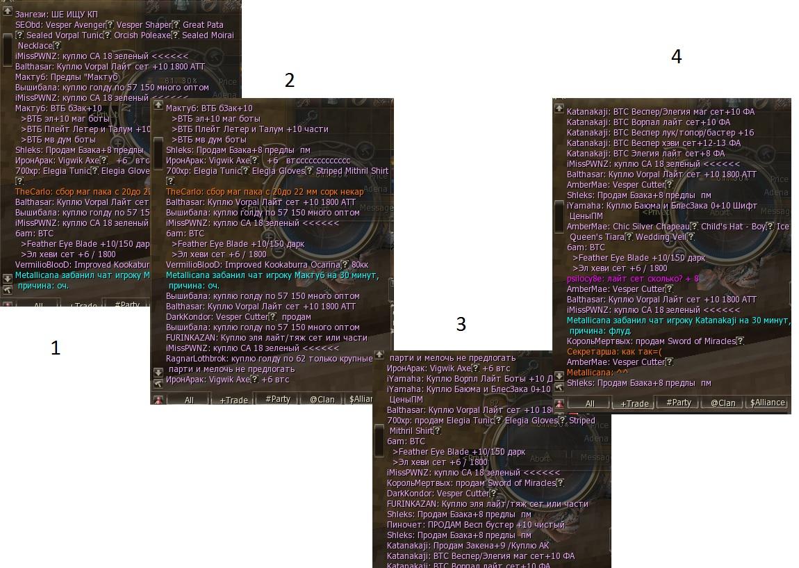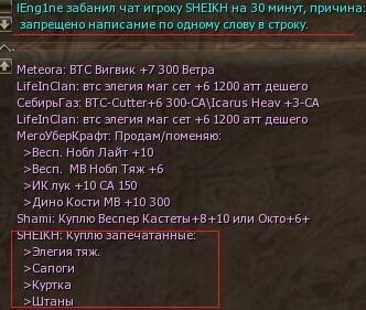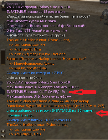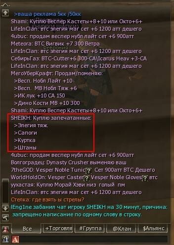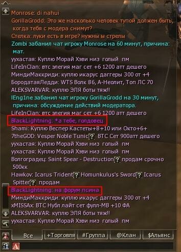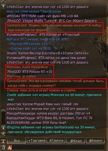 Xandir Опубликовано 8 июня, 2015 Поделиться Опубликовано 8 июня, 2015 1.ник модератора Стражник 2.я не кричал не продам не куплю, просто шифтанул меч и написал +8... за что бан чата? я понимаю модераторам нужно зарабатывать но бань уже за такое абсурд Даже если не брать в расчёт то, что шифт предмета в шаут у нас приравнивается к попытке продажи, факт попытки продажи присутствовал:2015-06-08 21:24:53 iBad SHOUT Type=1 ID=291380619 Color=0 Underline=0 Title=Vesper Cutter+8 ... 2015-06-08 21:18:43 iBad TRADE Type=1 ID=291380619 Color=0 Underline=0 Title=Vesper Cutter+8 втс не дорого ... 2015-06-08 21:08:55 iBad TRADE Type=1 ID=291380619 Color=0 Underline=0 Title=Vesper Cutter+8 втс Ссылка на комментарий Поделиться на другие сайты Поделиться