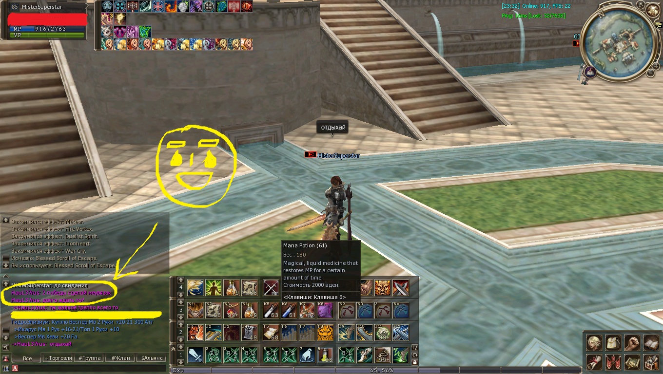 MrSuperstar Опубликовано 22 апреля, 2016 Поделиться Опубликовано 22 апреля, 2016 1 час назад, wkolnik сказал: никого не смушает что он под шилой :DDDDD Я и не скрываю что под шилой. Думаю когда приходиться выходить против 2-х - 3-х соперников, которые в свою очередь тоже далеко не на Альт бафе и бросаються на тебя как бык на красную тряпку, то шилку бафнуть не грех. 1 час назад, ТипоПаладин сказал: На 1ом скрине видно ,что его бил дагер, а на втором он в морае Какие ты причины найдешь если я сюда еще десяток скринов скину?)))) 1 час назад, lBlElRSlElRlK сказал: И чего добились за 7 лет ? Уважения друзей, лютую ненависть врагов, и признание на сервере. Нету кланов которые о нас не знают и не важно с хорошей стороны или плохой. В свое время ВСЕ видные кланы кроме ГА просили нашей поддержки и слышали отказ (видимо одна из причин ненависти к клану). С этим можно даже и не спорить. 55 минут назад, PWPW сказал: Показать содержимое в твоем систем-чате нет ни одного сообщения о том что ты нанес этому сорку хоть какойто демаг Чат имеет свойство двигаться вверх если ты не знал. 57 минут назад, PWPW сказал: Показать содержимое а про свой клан и недоКаЛа можешь ни че больше не писать , и так все знают кто вы и что вы из себя представляете .... За то о тебе никто и ничего не знает)) Вот и молчи Ссылка на комментарий Поделиться на другие сайты Поделиться