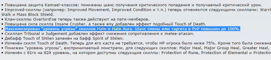 NNH Опубликовано 10 ноября, 2016 Поделиться Опубликовано 10 ноября, 2016 (изменено) 9 минут назад, Aranar сказал: У кого? Это касалось танков и максимального лвл скила агра, который учится на 74 лвл. Там ничего такого не написанно, извини, конечно, но мне уже лень впустую искать тебе пруфы, полистай сам любые темки с этим обсуждением, хейт так работал с любого уровня умения и различие было только в колличестве агра на цель и возможность заточки. Если ты внимательно погуглишь, то увидишь, что шансовым агр был только на камаэль хрониках и выше ГоД хроник его сделали таким обратно, с каких то артей или линдвиоров уже это ввели. Серьезно, какой смысл мне с тобой спорить, если ты только кричишь "все так и было, я помню!", а сам ничего показать не можешь существенного, кроме пруфа с абсолютно другой игры в виде классика? Изменено 10 ноября, 2016 пользователем Fadjet Ссылка на комментарий Поделиться на другие сайты Поделиться
