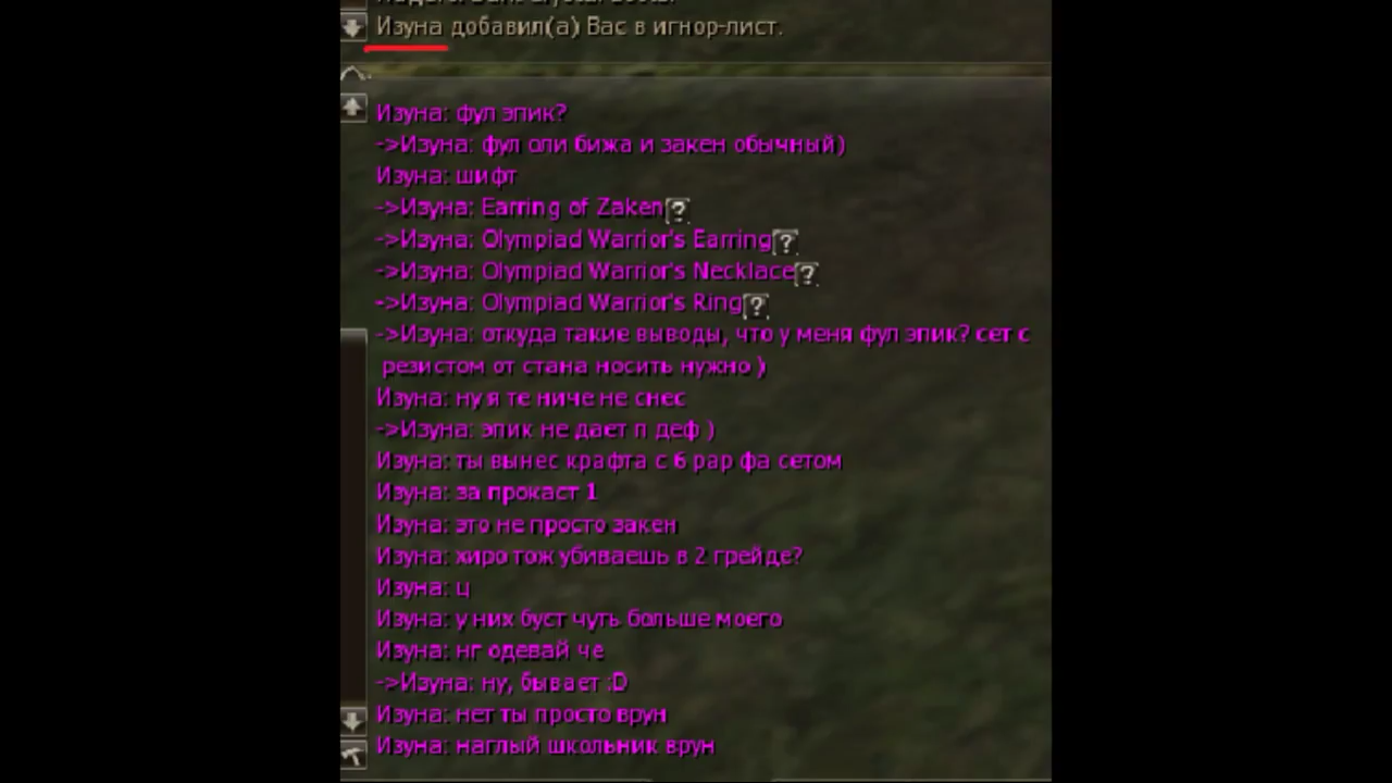 Изуна Опубликовано 11 февраля, 2020 Автор Поделиться Опубликовано 11 февраля, 2020 (изменено) 6 часов назад, АлексейСтратег сказал: нечестных боёв Когда ставят бардов в пати за углом ворот и говорят, что без ДС дерутся, когда бафают коня и отзывают его перед боем, когда перекидывают гцп банки трейдом во время пвп, когда говорят, что тебя убили на своем персе, хотя это был чужой перс совершенно, когда говорят и шифтуют тебе ворпал +3 лайт, а сами в +8 дрались, а потом орут с того бедного парня в мамбле (заборам привет), когда бьют паком одно тело и оскорбляют матерей в пм (заборам снова привет), когда против тебя овер с 16 палкой и фул 10 эпиком, а ты это..гном без эпика обычный и тебя ещё заставляют без бафа выйти 1 на 1 и цп банок (без цп, чтоб было на олимп похоже, а без бафа, потому что баф овера это не баф, а типо селфы такие, так что все равноценно). Это так, по памяти. Могу даже ники написать и все эти истории с мельчайшими деталями + добавить штук 20 ещё) И вот тебя поливают дерьмом, что ты не вывез. Что ты фуфло. Я прекрасно знал на что они способны и что у меня нет и шанса. Но я выходил драться. Потому что я боевой пвп гном. Легенда сервера. Мне на земле валяться осмеянным комфортней и привычней, чем стоять терпилой без яиц и белым ником. Хз, помню мы в СоА остались с арбой вдвоем, за ним пол пака погналось, а я троих убил. Боевого некра, спойла и шк вроде. Потом те пацаны прибежали и толпой меня в 10 забуцали. Я секунд 10 держался даже, как РБ настоящий. То целест вылезет, то на пантах банка и батл край, дадут секунды 2. Незабываемые ощущения, приколи, тебя полтора пака мочит, а ты отбиваешься, даже чара своего от эффектов не видишь в этой толпе и с ужасом наблюдаешь, как твоя полоска скачет как спидометр, а жить остаётся секунд 5 по подсчётам и надо хотя бы, кого нибудь, да успеть отправить на тот свет за собой..)) Лан.. наверно не поймёшь. Есть что вспомнить и рассказать. Это главное, время убито не зря. Изменено 11 февраля, 2020 пользователем Изуна 1 Цитата Ссылка на комментарий Поделиться на другие сайты Поделиться