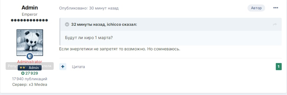 GetDD Опубликовано 16 февраля, 2021 Поделиться Опубликовано 16 февраля, 2021 22 минуты назад, МатьПрокурора сказал: С чего вы взяли вообще что хиро с 1 ?))) даже топы фармерки нормально забустят чаров в лучшем случае через неделю. в ржавых сетах заливаться будут? ну хз врядли... скорее всего олимп будет открыт с понедельника, хиро через 3 недели как это было бы в нормальной ситуации. в середине марта Ссылка на комментарий Поделиться на другие сайты Поделиться