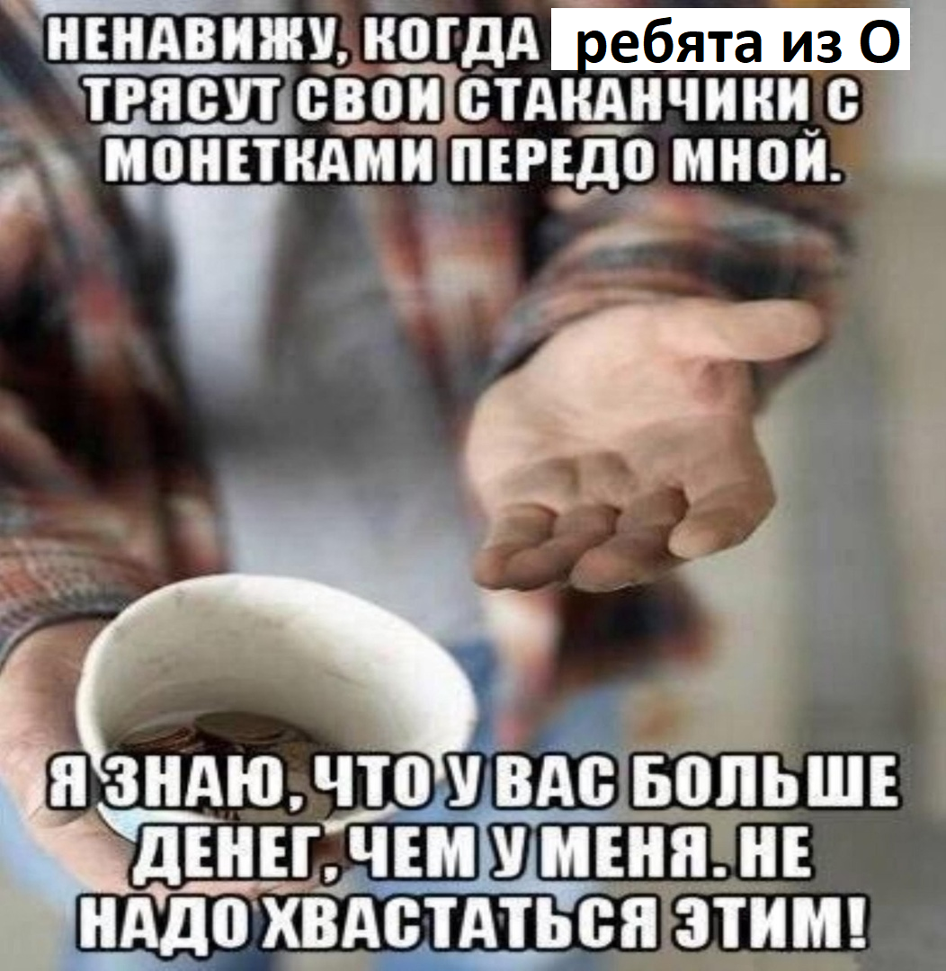 Получается, злобная толпа богатых О напала на кучку нищих Е без буста)  И не стыдно вам?)