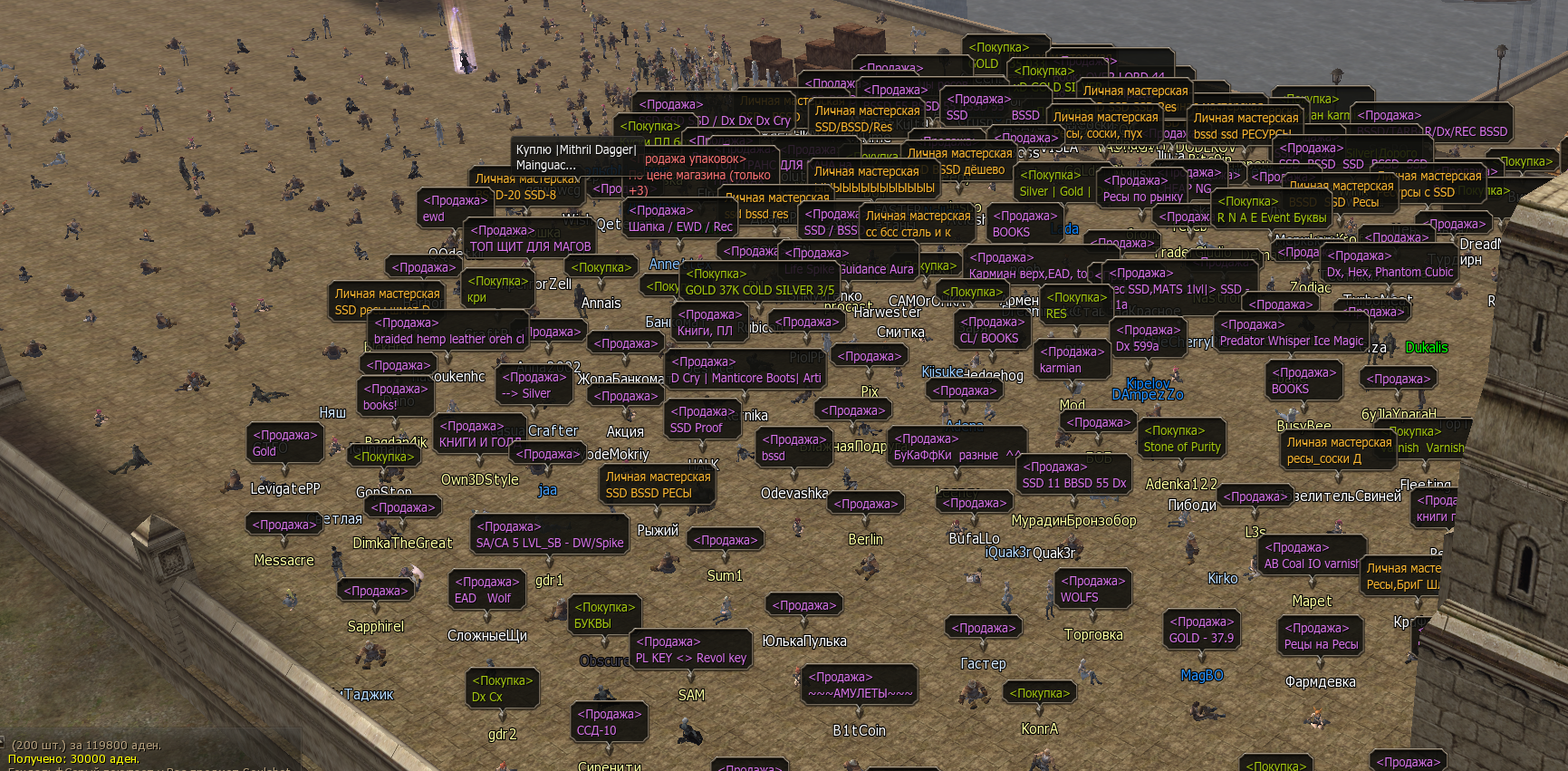 Chaotic Опубликовано 11 сентября, 2021 Поделиться Опубликовано 11 сентября, 2021 14 часов назад, fanKIPELOVa сказал: 1) Ты сервер не перепутал?) На Астериосе УЖЕ есть брокер, он стоит в самом важном месте - в ГХ (а также в Гиране). Так что не умничай. Вопрос был про расстояние между торгашами, а не про брокера. 2) Ты наверное покупки в жизни на рынке делаешь, по старинке?) Современный мир, знаешь ли, полон агрегаторами и биржами, где можно отсортировать и выбрать товар. Упрощает выбор и экономит время. Так что не умничай х2. Не нервничай, всё хорошо . Я правда про предложения от Корела и killerdance в твоей теме. Сидящий трейдер и люди копошащиеся по городу в поисках чего-то даже без IB (как это можно наблюдать сейчас в Глудио или Глудине на х1) это и есть та самая атмосфера старого Л2. А не чёрствый аукционист, который забрал твою вещь и всё, как в новых играх. Покупаю по всякому. И в интеренете и на рынок могу выйти пройтись. И не делать это потому что кто-то считает это неверным, аппелируя к "современному миру" считаю глупостью Ссылка на комментарий Поделиться на другие сайты Поделиться
