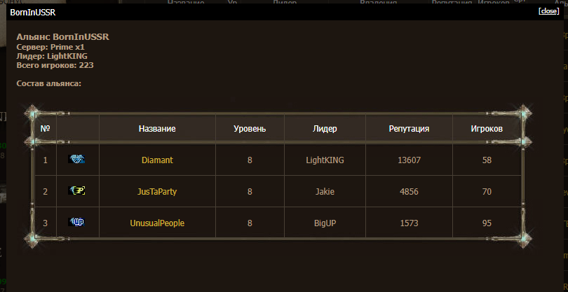 BigUP Опубликовано 8 марта, 2022 Поделиться Опубликовано 8 марта, 2022 (изменено) 15 часов назад, StеrWоzа сказал: Я состою сам в этом безобразии и оно мертвое. Вроде бигап что-то пытается реанимировать. Хотелось бы услышать инфу от КЛов. Диамант прокатил всех с регой на осады, я хз как можно так поступать, будучи КЛом. Когда-то это был альянс двух самостоятельных и дружных кланов UP и Diamant лайферского формата, с появлением 3го клана (JP) смогли выдать на позапрошлой осаде (середина февраля) онлайн в 11 паков. К сожалению, после 24 февраля у Даймондов не осталось полноценных паков. КЛ Даймондов, несмотря на потери, говорил, что они будут играть до лета, но к сожалению, ребята не смогли реорганизоваться внутри своего клана и в итоге завершили игру на сервере. На последней осаде КЛ Даймонтов не подтвердил нам рег и мы фактически были лишены возможности нормально сражаться, но винить его не буду, спишем это на эмоциональное состояние. Спасибо ребятам за игру, фактически со старта скооперировались и были вместе. 15 часов назад, StеrWоzа сказал: Я спрашиваю про действительно живое. КЛы отпишитесь, кто соберет оппозицию новому бигвару, чтобы тут вообще все не заквакали. Клан лайферского формата UnusualPeople на сервере остается, в данный момент занимаемся реорганизацией. Да, мы тоже понесли потери в своих рядах, многие сейчас "на паузе", однако интерес в целом к серверу х1 ещё не остыл. Попытаемся собрать оставшихся игроков нашего альянса у нас в клане, чуть позже будем готовы рассмотреть новые союзы. 15 часов назад, StеrWоzа сказал: 16 часов назад, H4tred сказал: это уже биг вар) Данный союз утратил актуальность, думаю они это прекрасно понимают. PS: Считаю, что большинство нынешних союзов нуждаются в пересмотре и реорганизации. Изменено 8 марта, 2022 пользователем BigUP Ссылка на комментарий Поделиться на другие сайты Поделиться