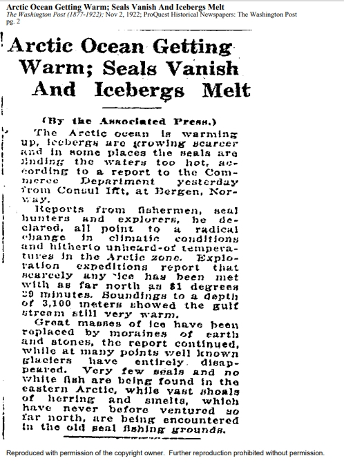Kangoshi Опубликовано 25 августа, 2022 Поделиться Опубликовано 25 августа, 2022 (изменено) Spoiler А вы знали, что второго ноября 1922 года в американской газете Washington Post напечатали статью про тающие ледники и уход прибережных городов под воду? Сто лет незад люди были умнее и не стали предсказывать конкретные сроки. Но план существовал ещё тогда. Изменено 25 августа, 2022 пользователем Kangoshi Ссылка на комментарий Поделиться на другие сайты Поделиться