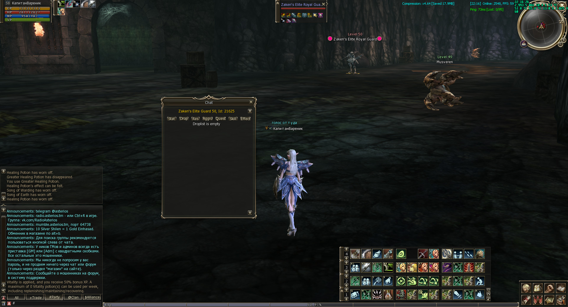 ChaosWarriorPWNZ Опубликовано 29 августа, 2022 Поделиться Опубликовано 29 августа, 2022 Есть такая локация, очень красивая, с классной музыкой и кучей комнат-пещер с монстрами, одна из самых запоминающихся в игре как по мне. И она на прошлом х1 была очень непопулярна, как впрочем и на почти любом сервере комплекса, поскольку там выставлен очень долгий респ мобов. Не считая Pirate Zombie (id 20836) с х2 хп и респом 55 сек и групповых мобов во главе с Sairon (id 20986) с респом 320 сек, все остальные мобы там имеют либо х4 хп и респ 180 секунд, либо х1 хп и респ 55 секунд. Щас побегал там на х1 свсом и большая часть х1 мобов убита около 80к раз, х4 мобов - около 40к раз (для сравнения бесполезных горгулий в ледяном лабиринте убили 415к раз, а пауков 600к раз). Суть предложения: сделать Sairon респ 100 секунд, всем х4 мобам 70 секунд (как в Silent Valley), х1 мобам 30 секунд (как в Frozen Labyrinth). Из рассчета что в одной комнате будет качаться 1 сапорт и 2 дд должно быть минимально-норм поидее, учитвая что гербов там нет. А еще эта локация один из немногих источников кусков на топ Ц оружие вроде Samurai Longsword и Berserker Blade. PS а еще там с одного моба нет дропа прямо совсем: Zaken's Elite Royal Guard (id 21625) 6 Ссылка на комментарий Поделиться на другие сайты Поделиться