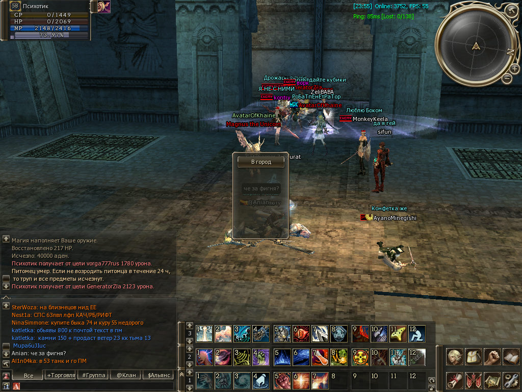 Кузьмич Опубликовано 20 июня, 2010 Поделиться Опубликовано 20 июня, 2010 "пвп или засцал" кричит хавк 80+ с фул бафом мне мне бишу 58 в апостатах к сожалению етот альянс выше апостат больше нигде невстричаетса((( генератор зла на х55 пкшил моего твинка в масаке. заходил ножом - немного резни, бсое. потом опять в пк твинка. опять релог ножом, опять бсое. все-таки убили потом его в стане в кустах, наверно всех уже достал скринов к сожалению нет согласен, в локациях хай лвл нигде не встречал Ссылка на комментарий Поделиться на другие сайты Поделиться