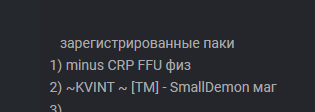 SmallDemon Опубликовано 30 ноября, 2023 Поделиться Опубликовано 30 ноября, 2023 1) ~KVINT ~ [TM] - SmallDemon 2) Маги 3) Emperes 0 Цитата Ссылка на комментарий Поделиться на другие сайты Поделиться
