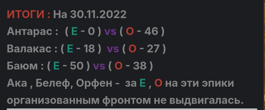 Круэнтус Опубликовано 31 августа, 2024 Поделиться Опубликовано 31 августа, 2024 (изменено) 21 час назад, Творожок сказал: Полтора года перемешал) не помню файтов на валике, когда в цц было 500+. Пришли, упали, улетели. Даже второй раз не пробовали. Как и не помню файтов на тарасе. Обоссаный балабол, даже на Тарасе было по 2-3+ заходов когда перевес в количестве был х3-4 хД Неудержимое желание тяфкнуть на Ешек отключает мозг напрочь?) ЗЫ итоги файтов на эпиках за +- год врыва азазиции: Изменено 31 августа, 2024 пользователем Круэнтус Ссылка на комментарий Поделиться на другие сайты Поделиться