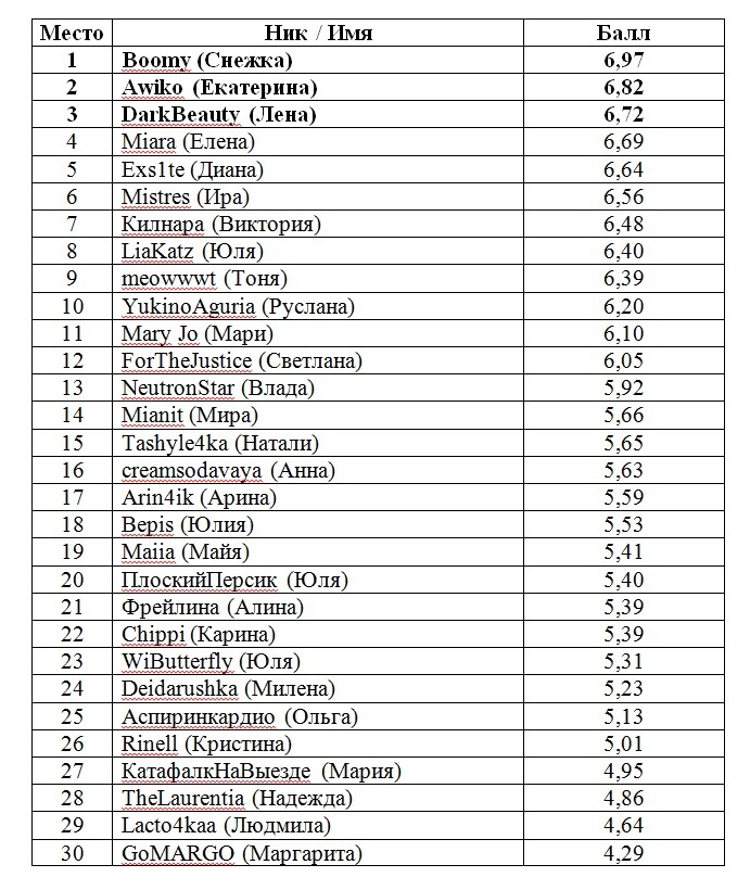 я так и не поняла, это был результат по голосованию на форуме ? а где тогда результаты голосования жюри ? или я тоже в глаза ?(