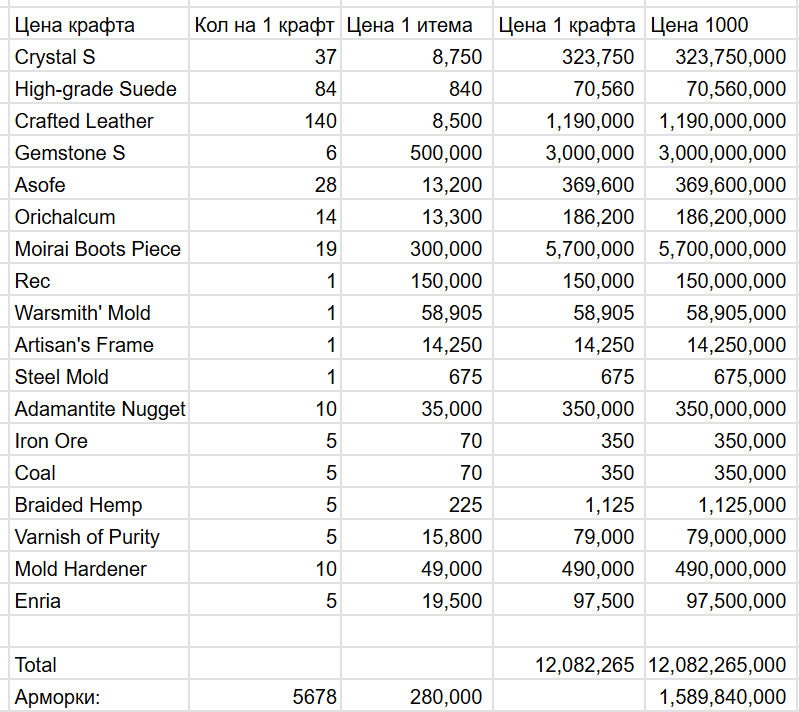 LordS1on Опубликовано 15 апреля Автор Поделиться Опубликовано 15 апреля (изменено) 9 hours ago, Claudes said: Почему скрафчено 545 (ок, 512 без мв) а заточено 522 Я ничего не понимаю, сложна-сложна ну.... пбычно на споте где споилица кусок на шмотку, эта шмотка падает с мобоф? 9 hours ago, Claudes said: Почему 522 на +3 (522*3=1566) у тебя получается 2088 ну потому что для того чтобы пойти на +4, нужно 4 точки? 522*4=2088, и следующая строка показывает что осталось/зашло 321. и видно что на точку +5 нужно 321 точка? хз, у меня фсе вроде логично) Изменено 15 апреля пользователем LordS1on 1 Цитата Ссылка на комментарий Поделиться на другие сайты Поделиться