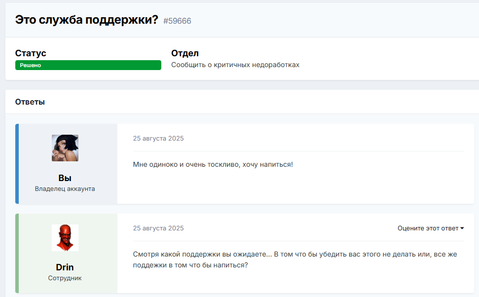 Ревенджер Опубликовано 25 августа Поделиться Опубликовано 25 августа Только что, Ошибся сказал: А говорят в поддержке долго отвечают.... Ссылка на комментарий Поделиться на другие сайты Поделиться